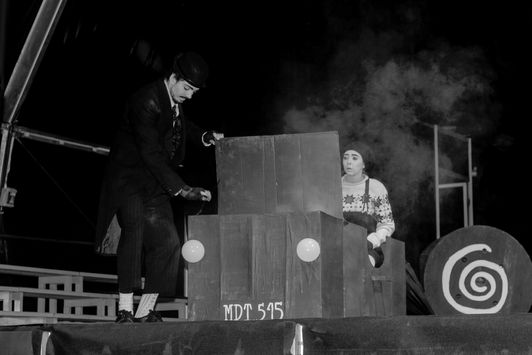 Este espetáculo inspirado nos filmes de Charlie Chaplin e Buster Keaton, remonta à produção de um espetáculo usando apenas duas linhas de cor: o branco e o preto.